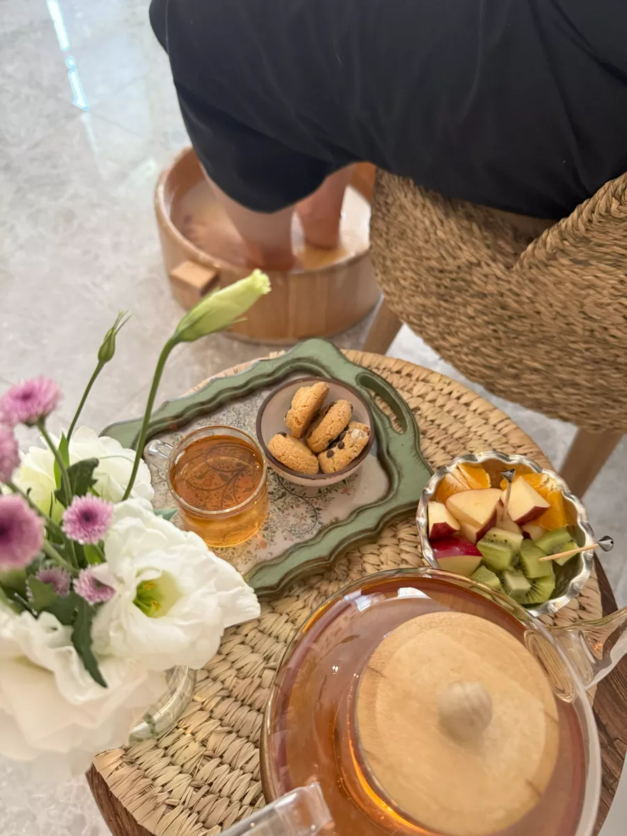 این پکیج 5 ساعته شامل موارد زیر است: ماساژ کل بدن + ماساژ سر و صورت + فیشیال و پاکسازی VIP صورت + پدیکور VIP + سم زدایی + پکیج پذیرایی ویژه
